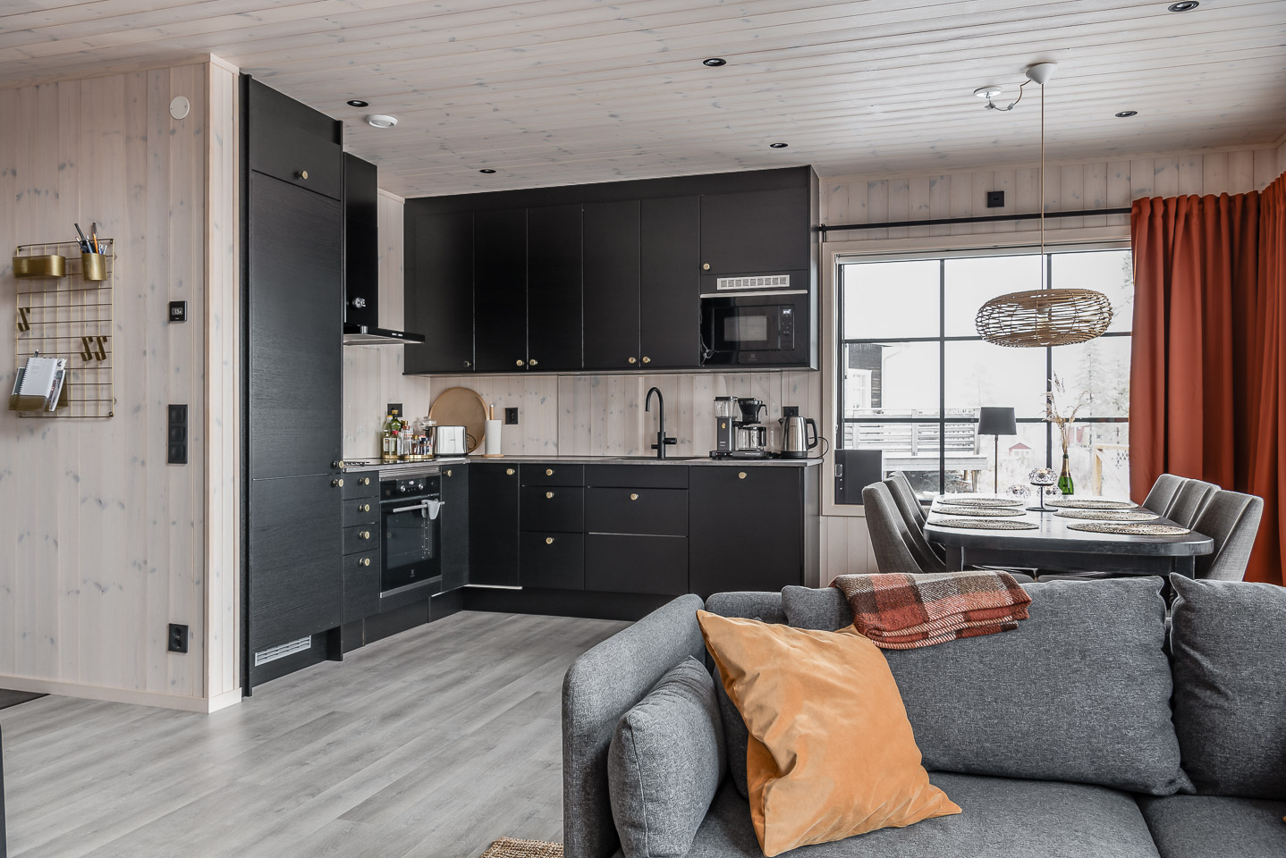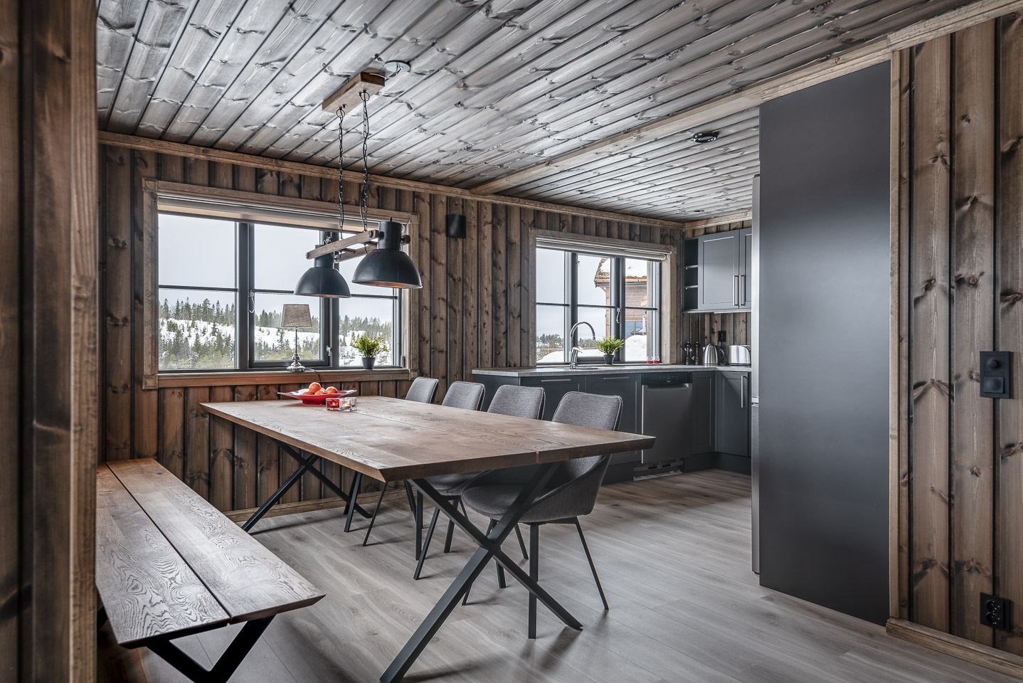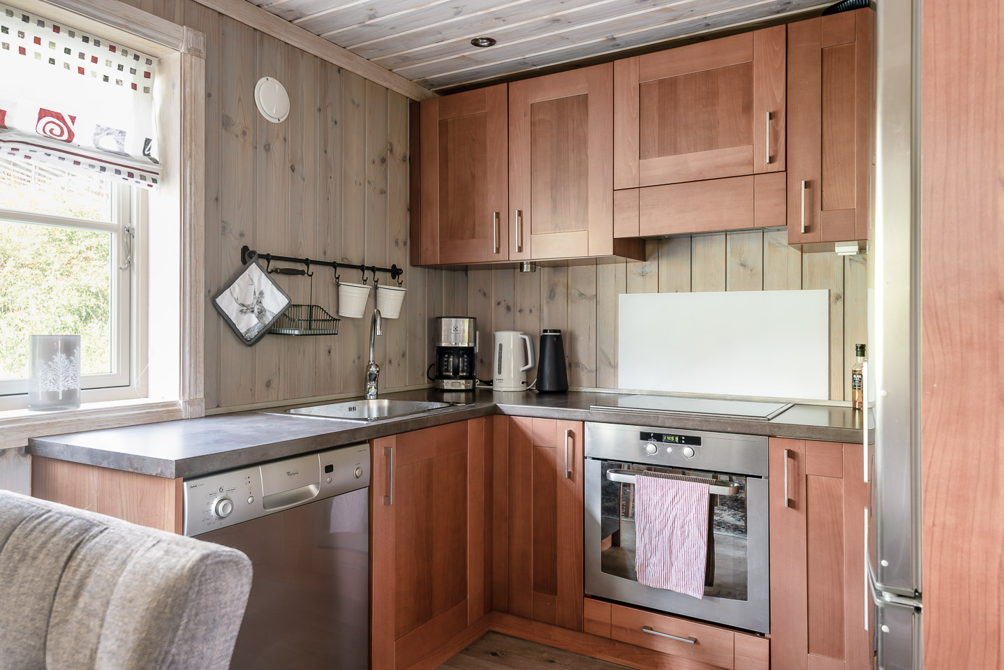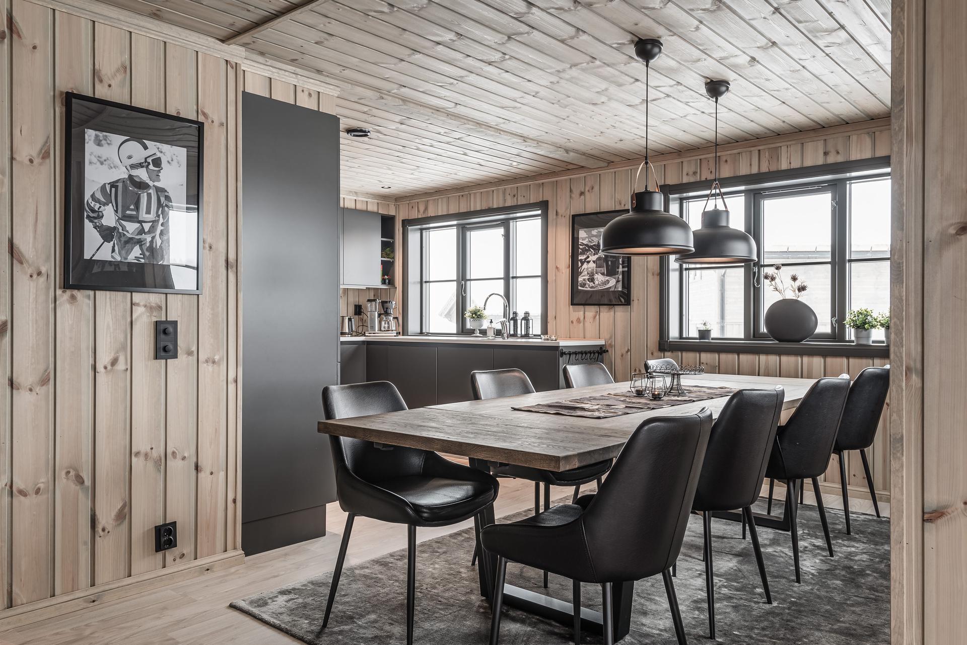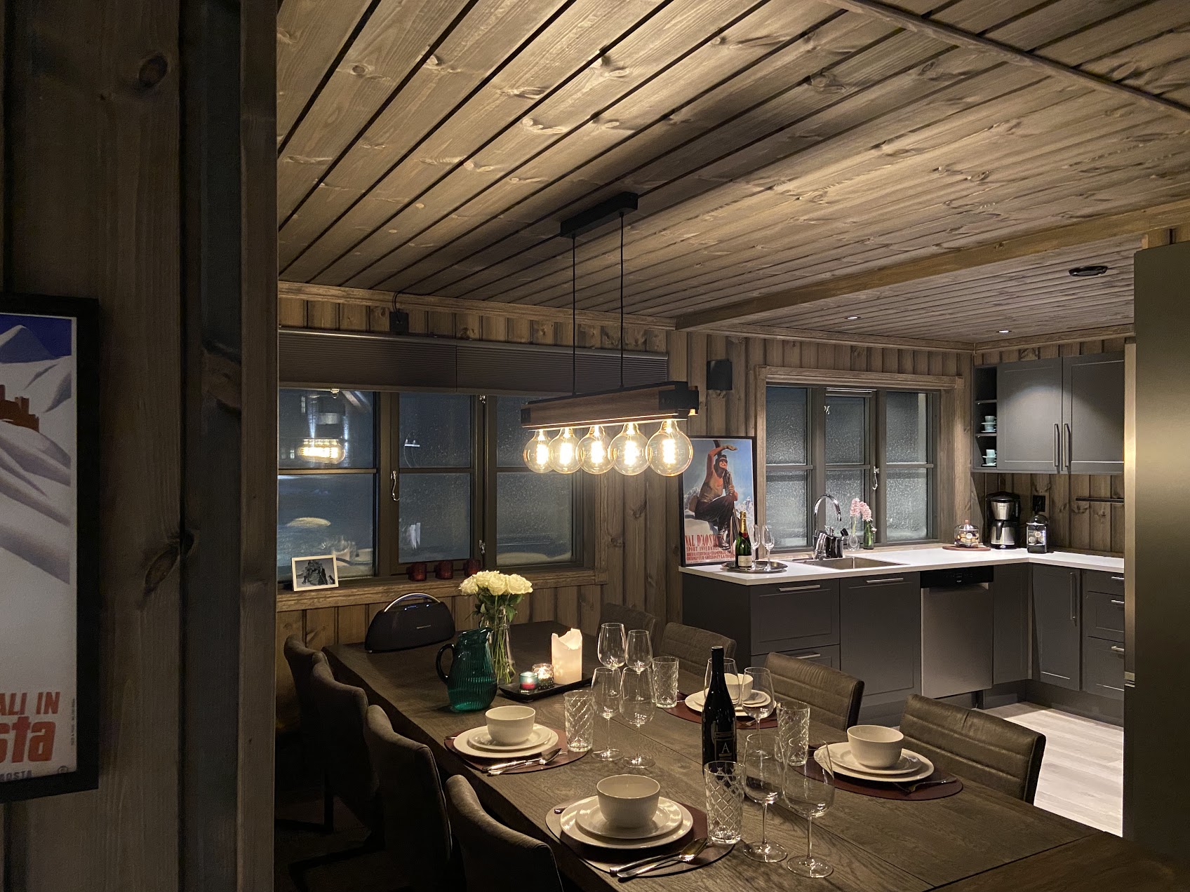 Köket ligger i anslutning där allt finns för 10 personer. -