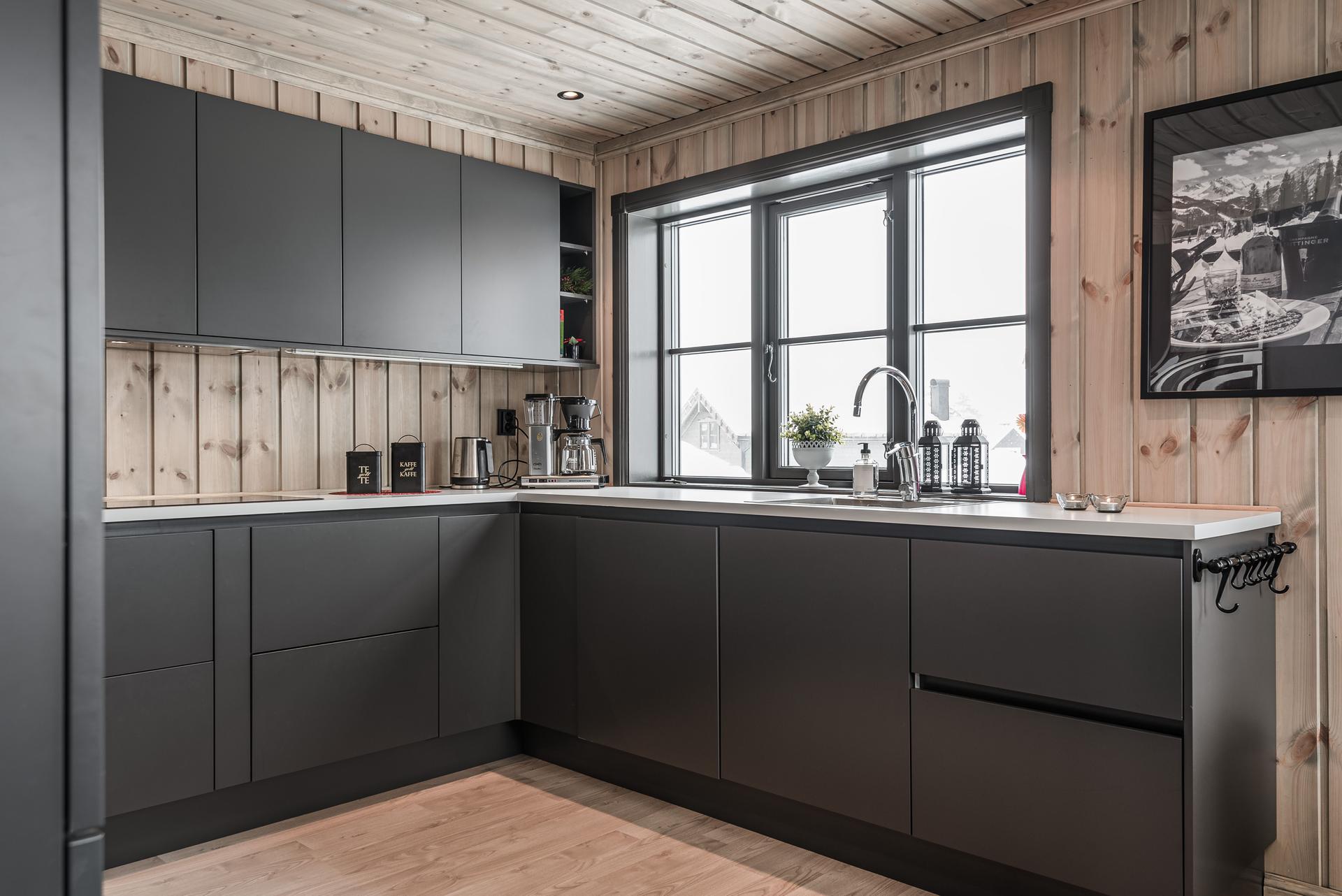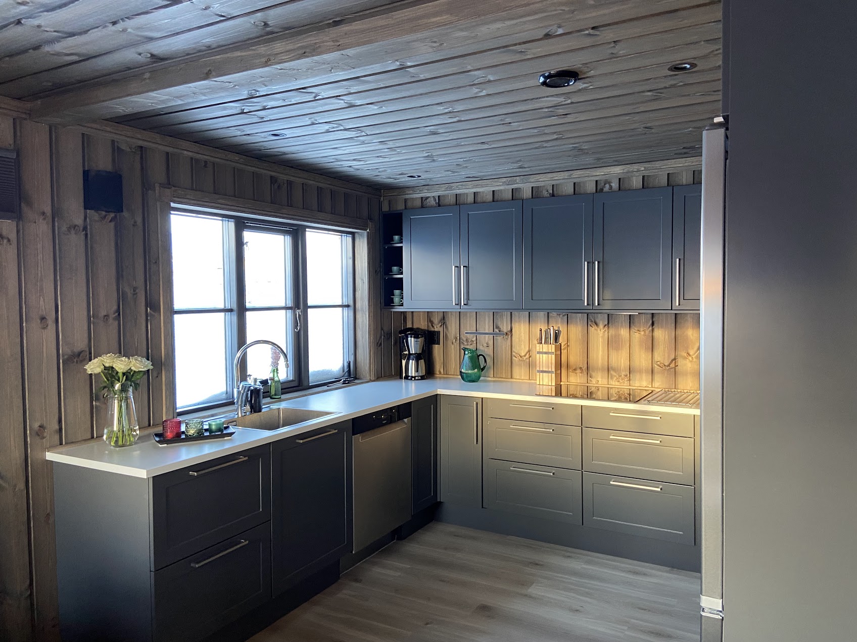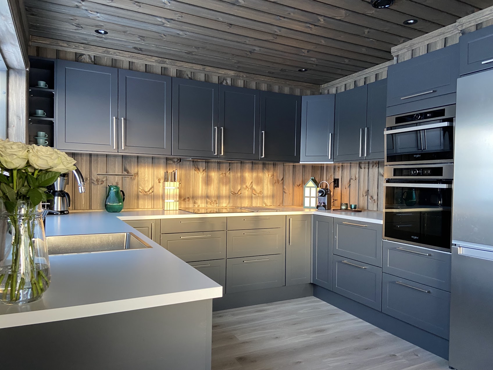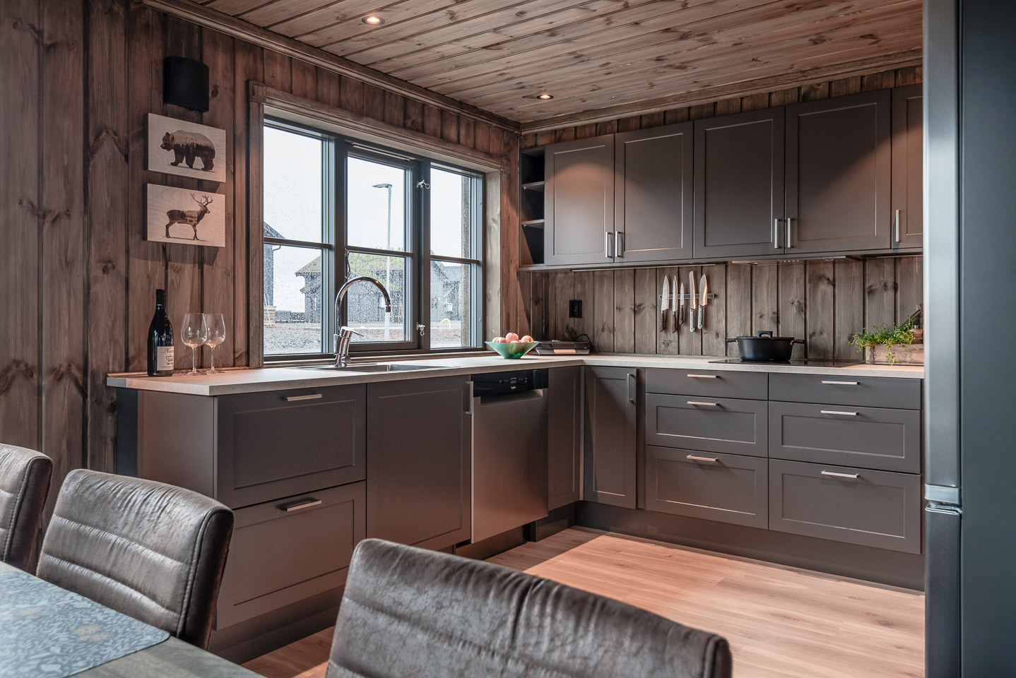 Köket ligger i anslutning där allt finns för 10 personer. -