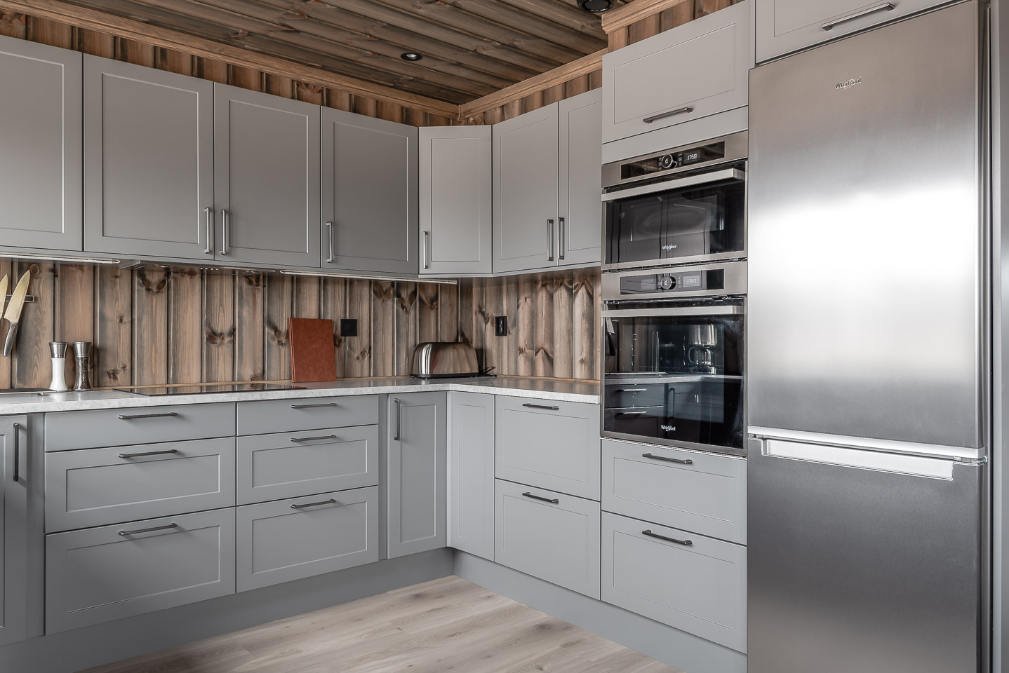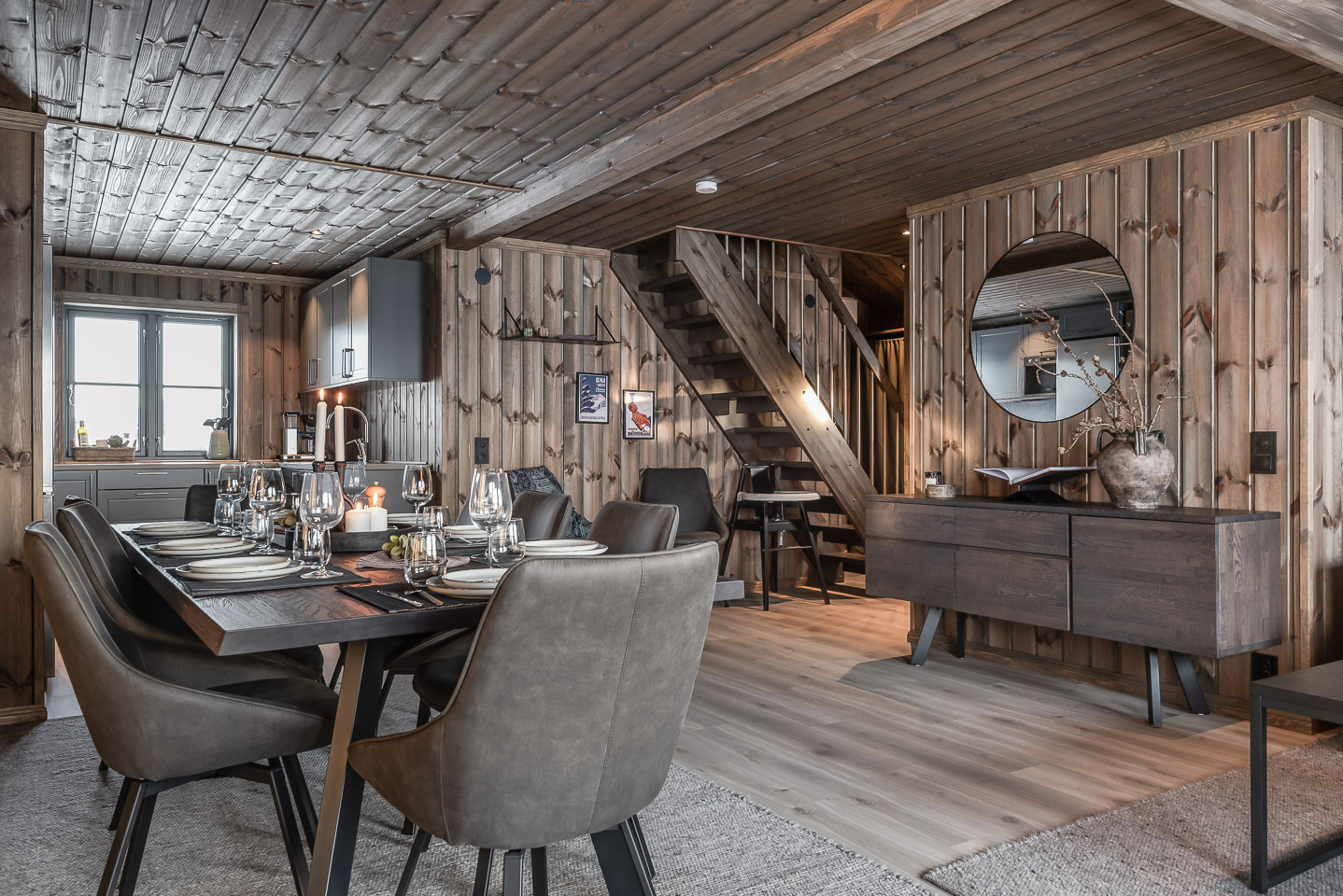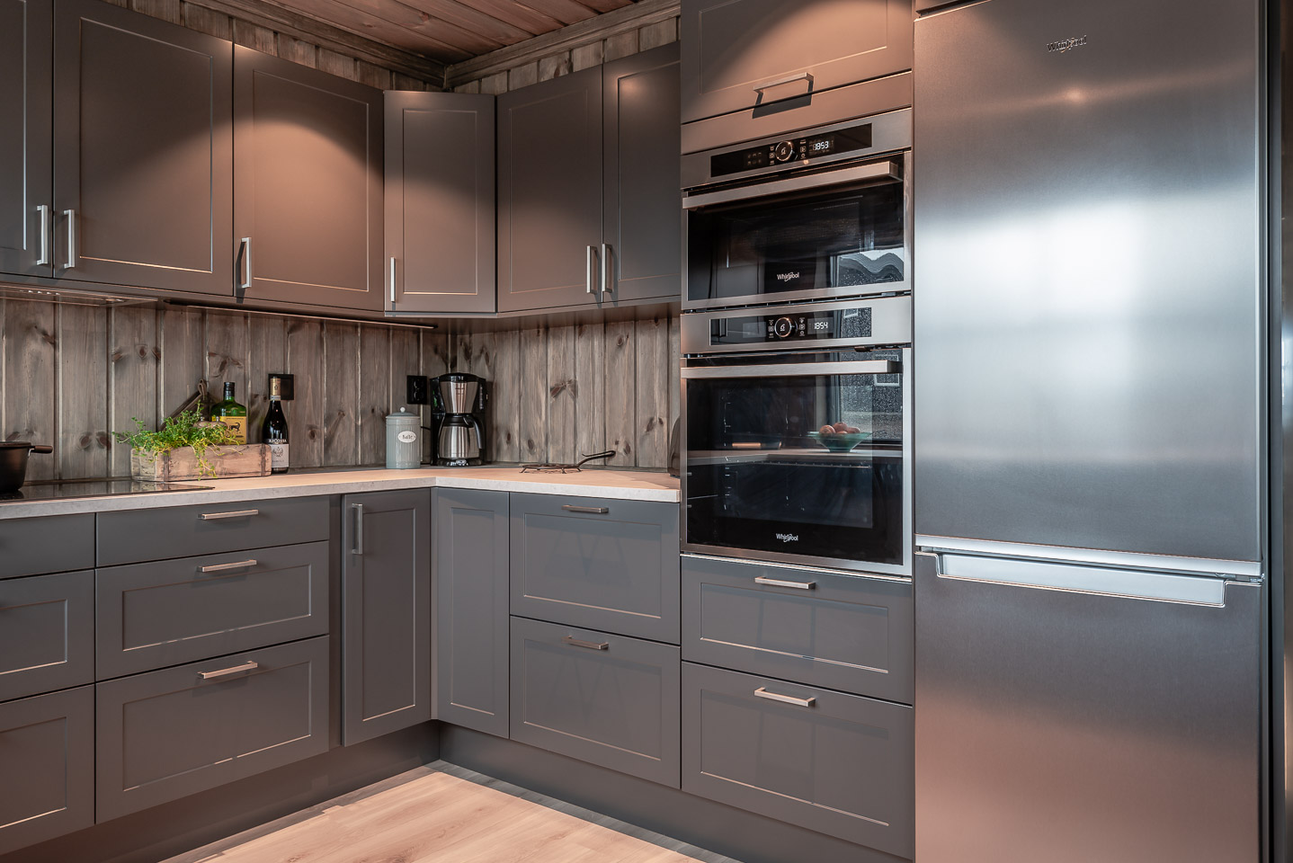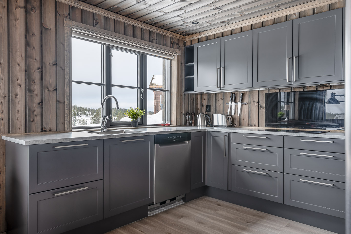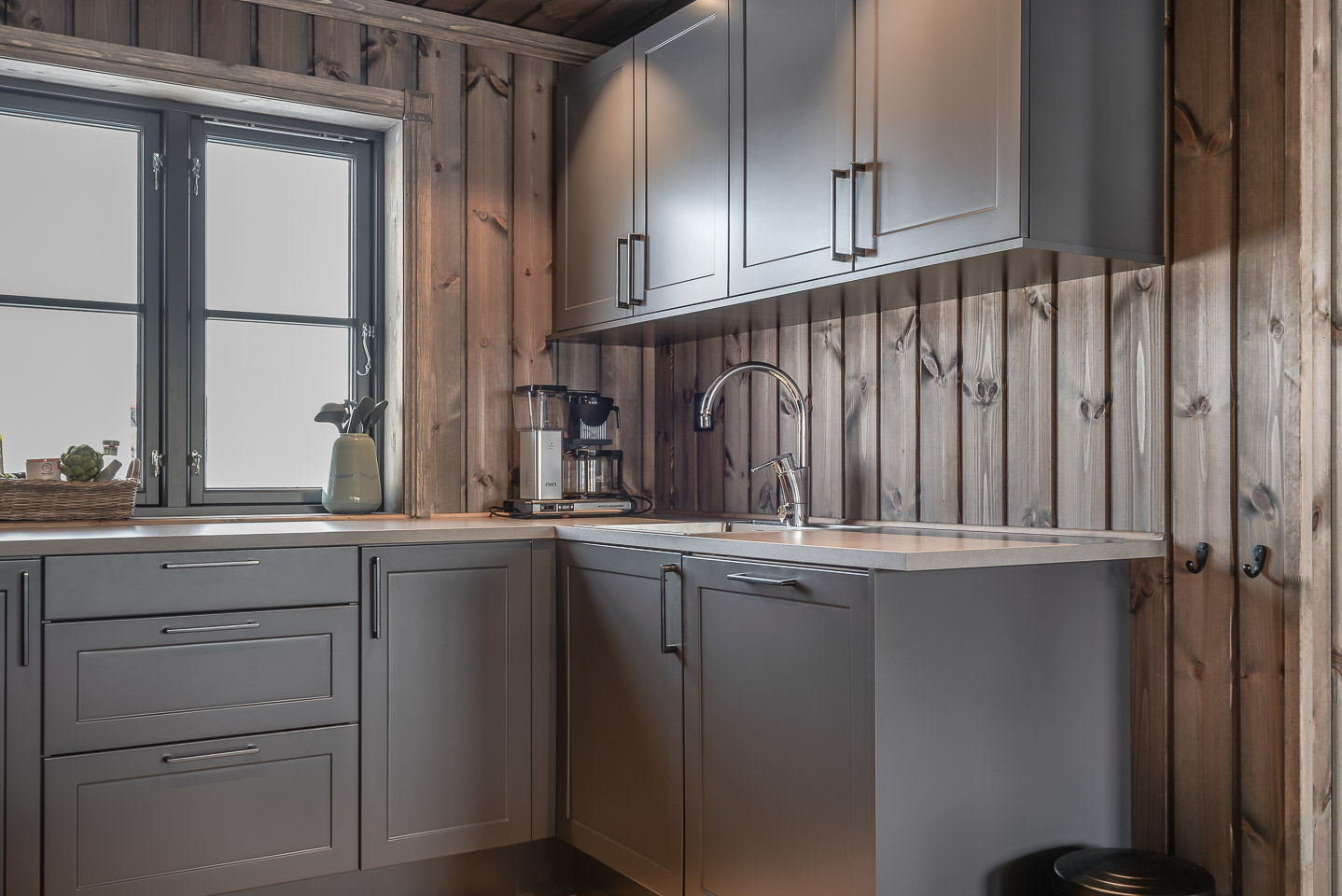 Köket ligger i anslutning där allt finns för 10 personer. -