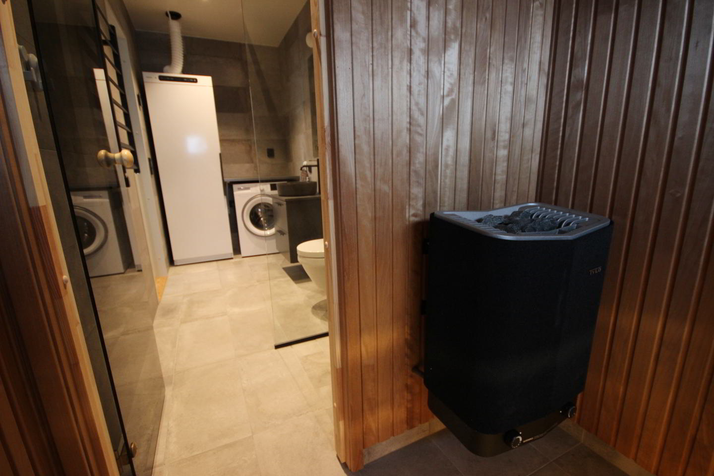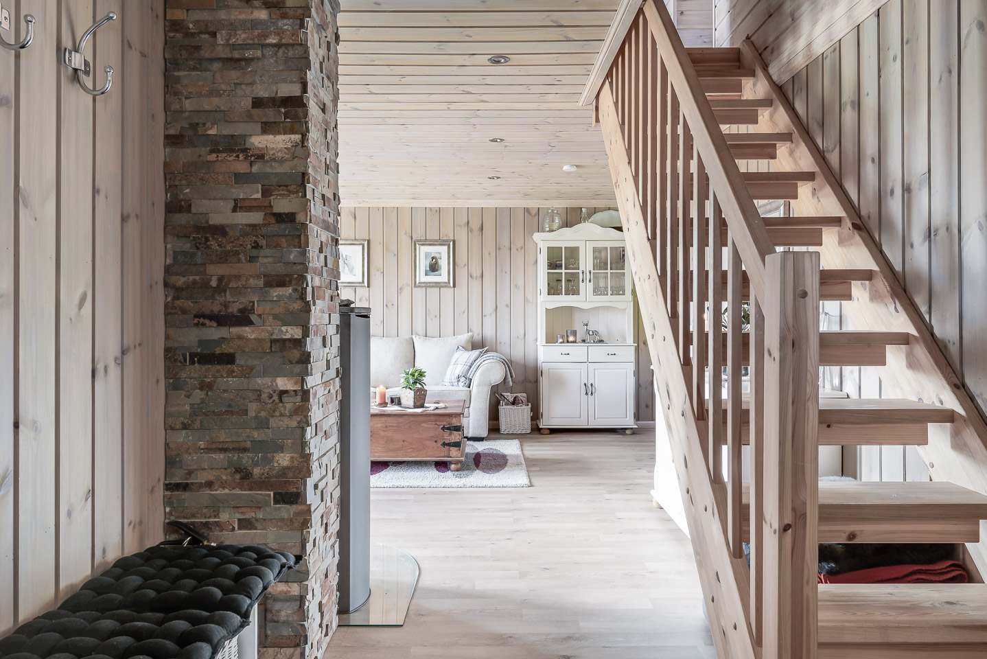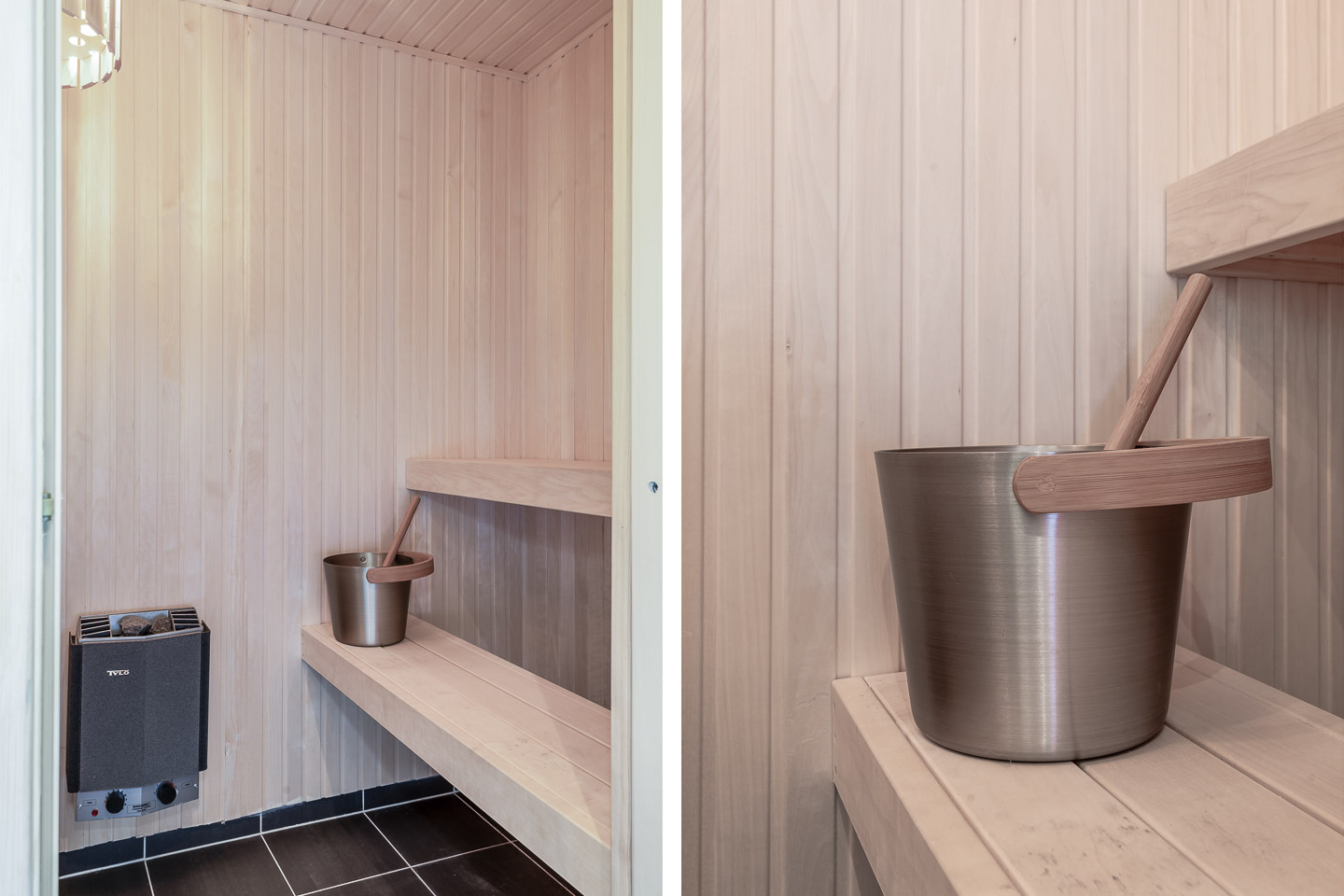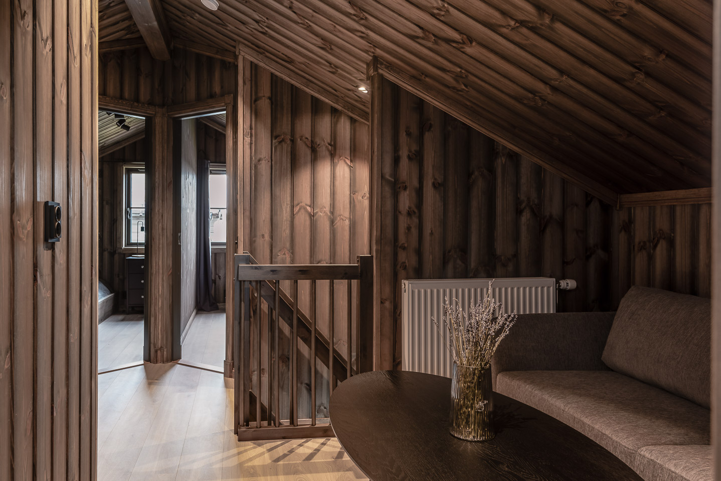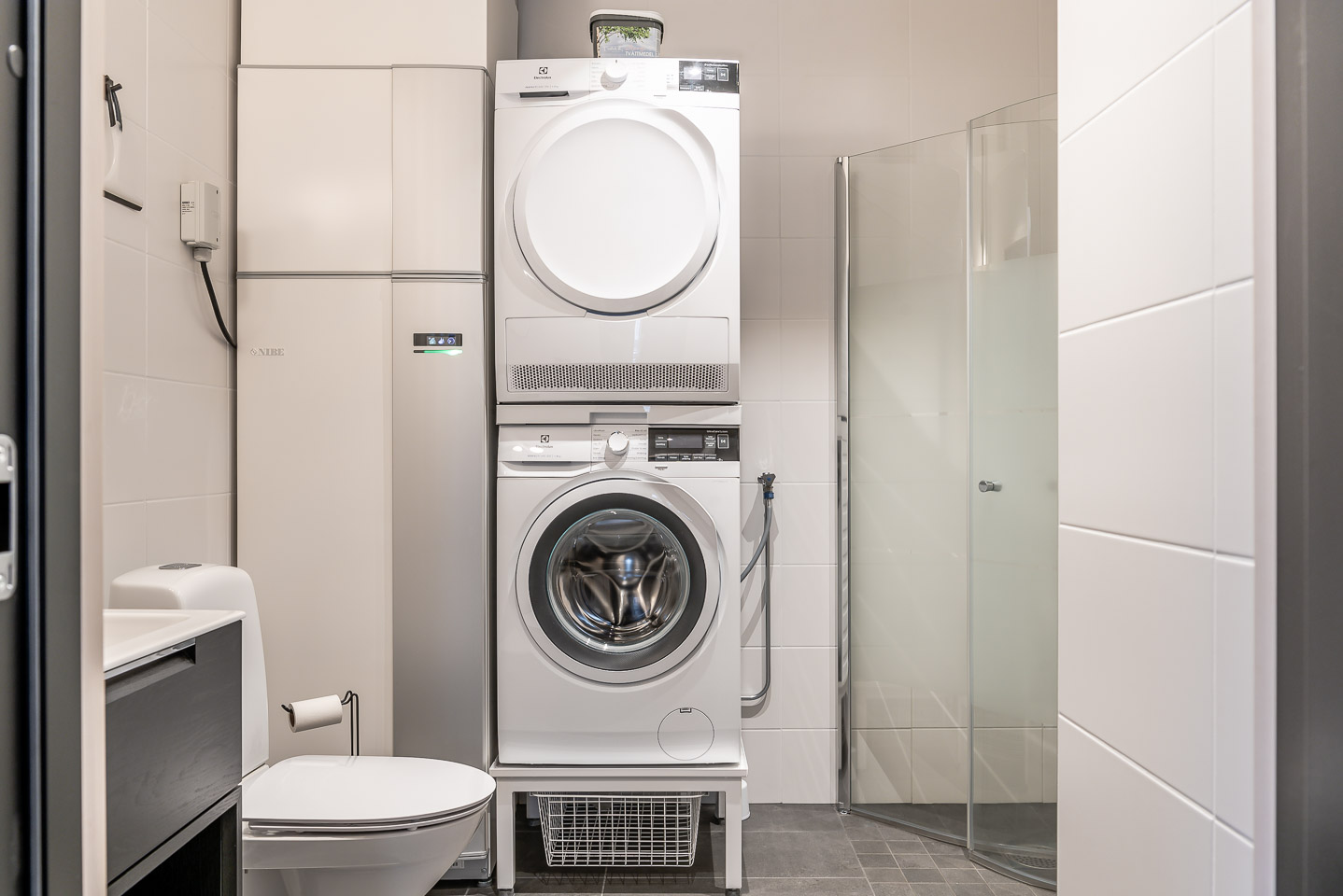 Det finns totalt två badrum i stugan ett på nedervåningen med dusch samt ett på