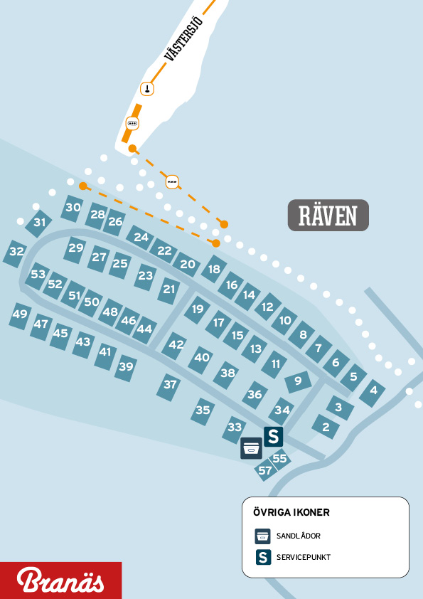 Nordväst om centrum på Branäsberget ligger Räven. När solen står lågt på vintern når den ändå fram hit. Det går en skidväg runt hela den angränsande stugbyn Orren så det är enkel ski-in/out från toppen på Västersjöbacken. Alla stugor har braskamin.