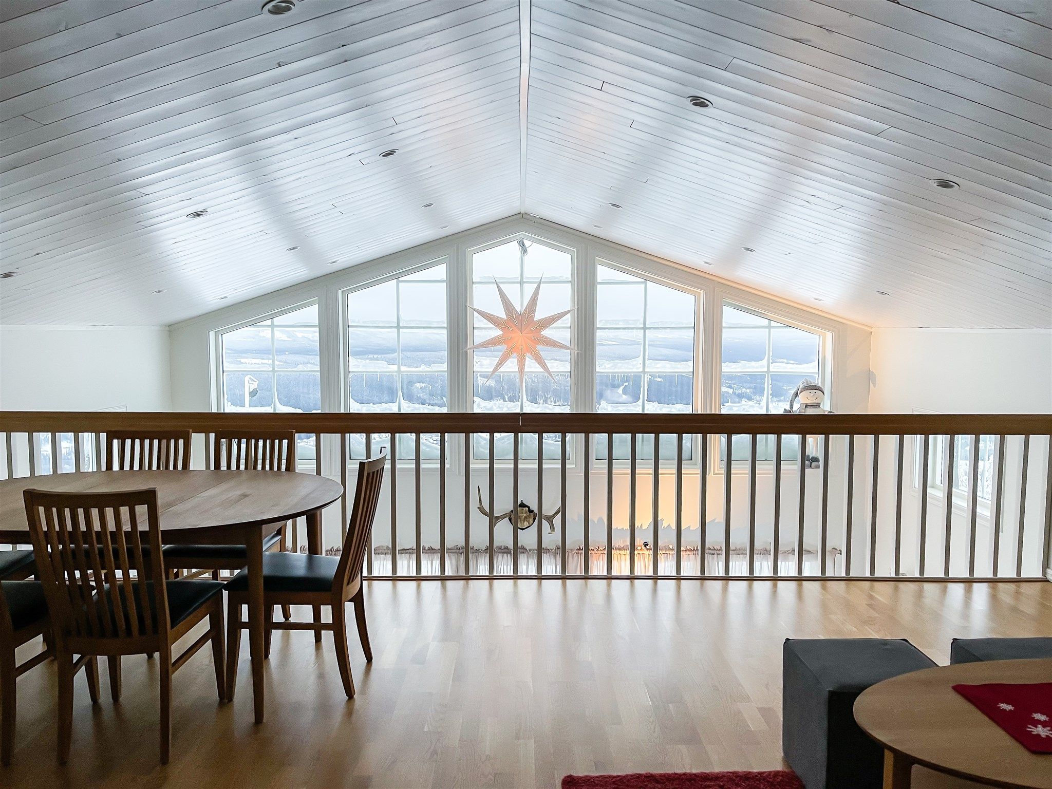 Detta är ett mindre allrum som är utrustat med soffa, tv och även ett mindre matbord. Ett bra ställe för de yngre att hålla till på, alternativt kunna arbeta lite avskilt.