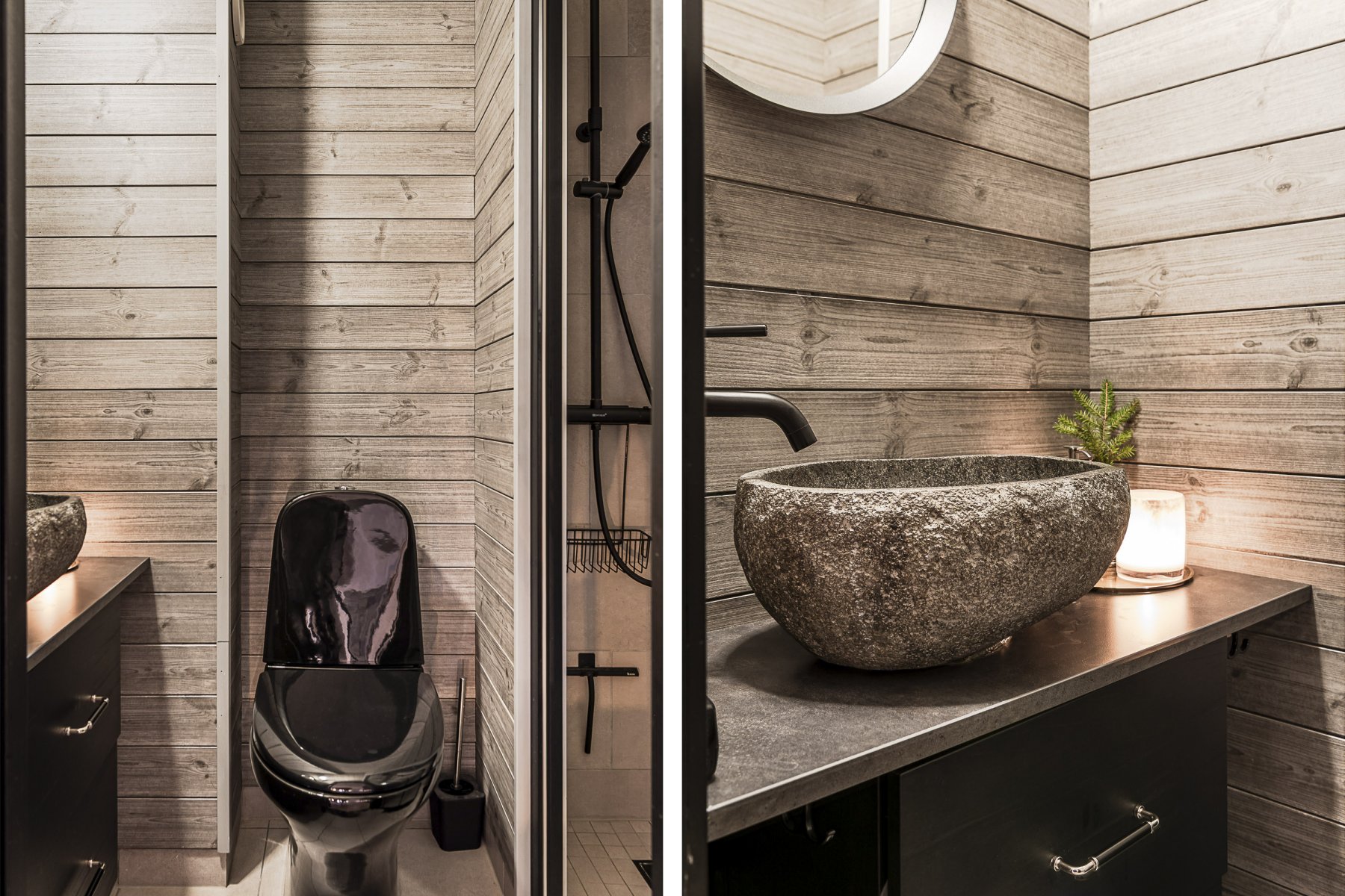 Här är också renoverat 2021 och har grå klinker med golvvärme samt delvis kaklade gråa väggar.